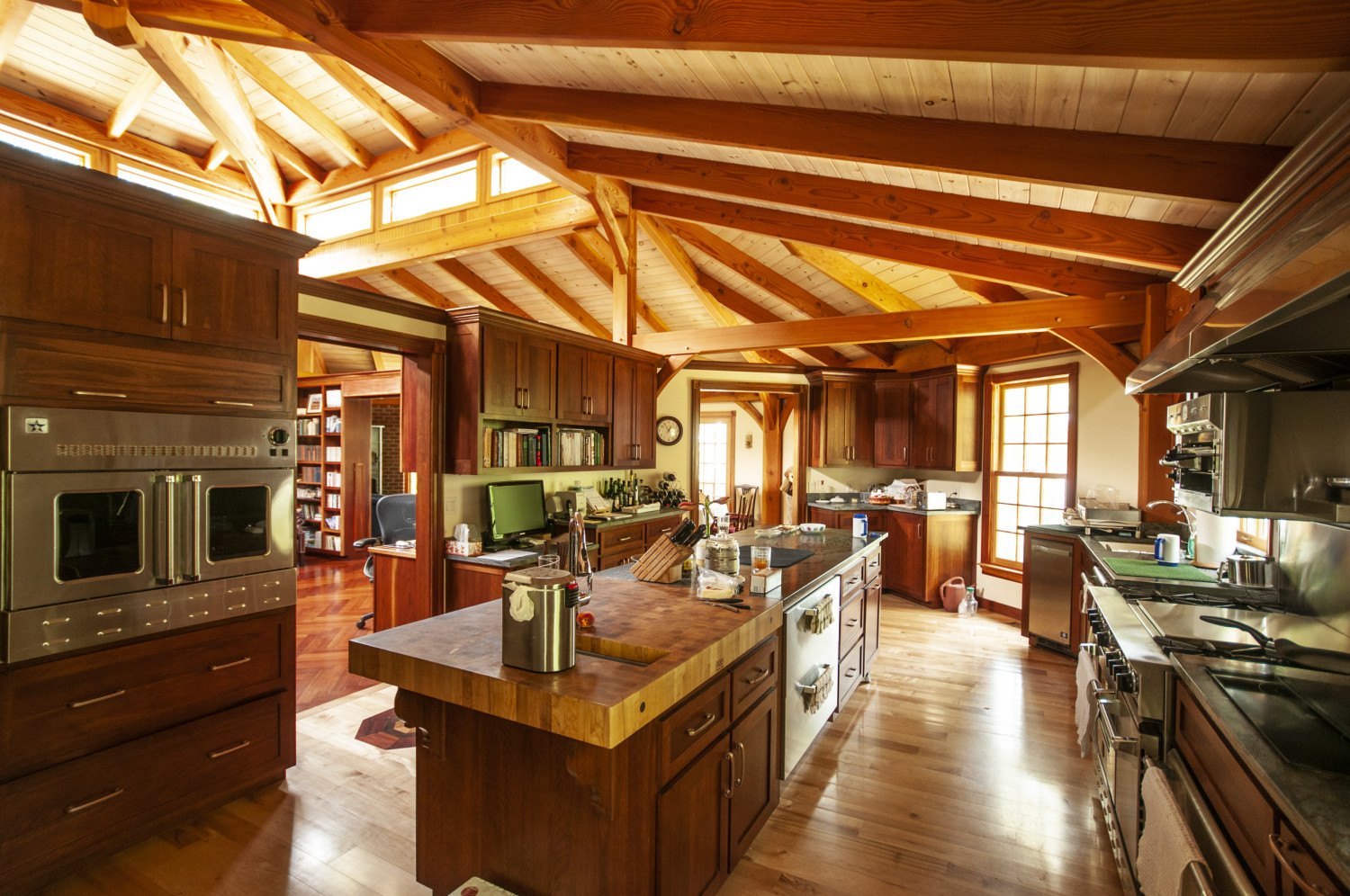 The house is fully timber framed and had to be engineered for a significant uplift in coastal Virginia, as well as higher than normal wind loads.