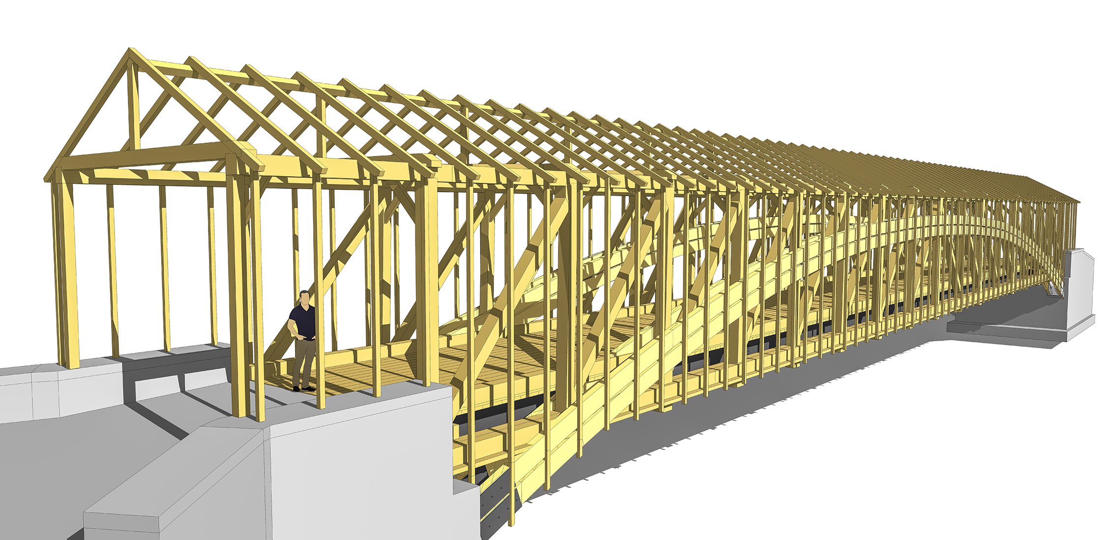 This historical reconstruction project was just completed in 2020. The original bridge over the Maiden Creek in Lenhartsville, Pennsylvania, had been built in 1869, but had been closed to all traffic for several years. Lancaster County Timber Frames disassembled the bridge and transported all of the original timbers to its facility in York, PA in September 2019. There, over the course of several months, we rehabilitated most of the existing timbers and replaced the rest.
