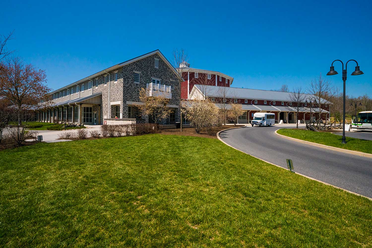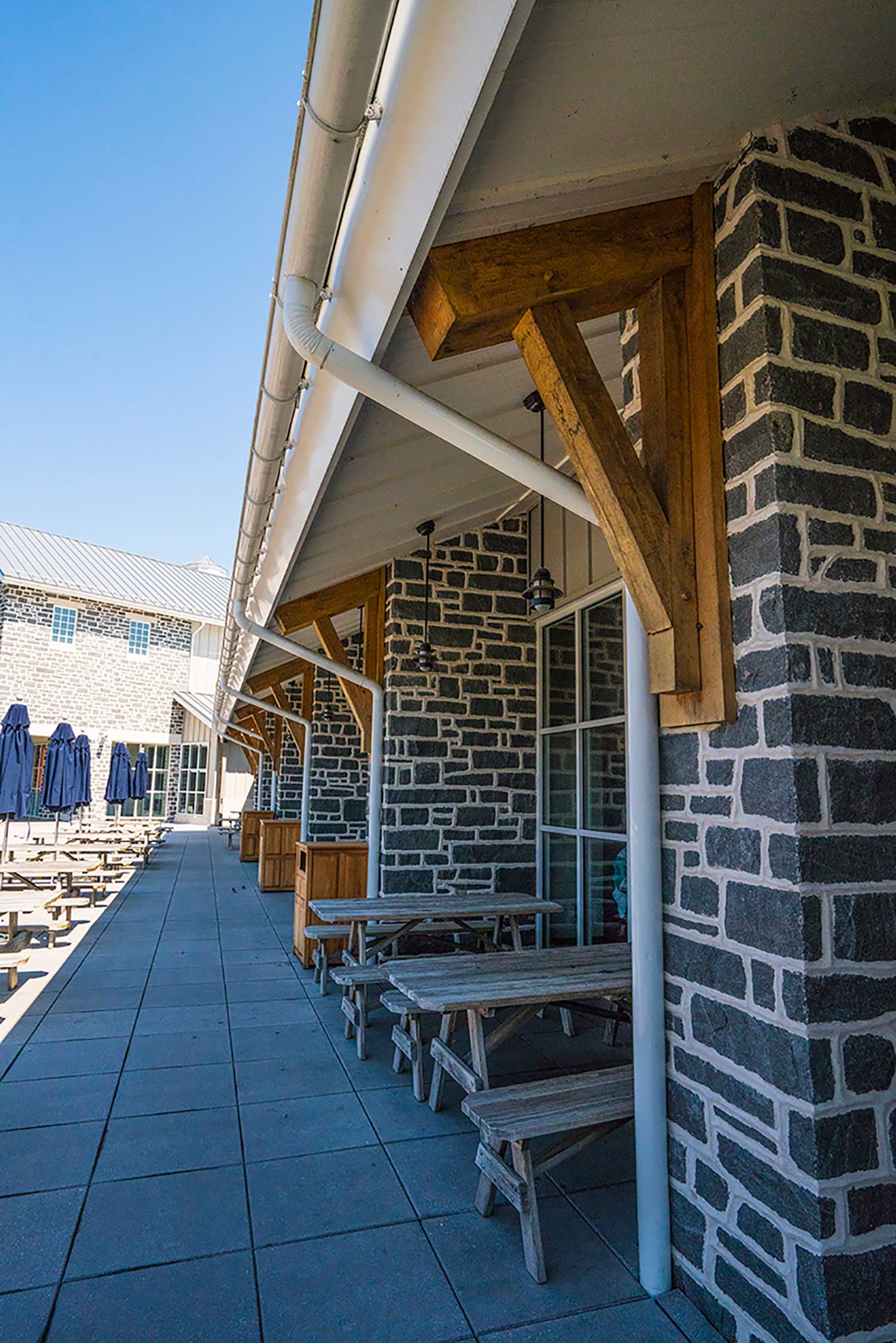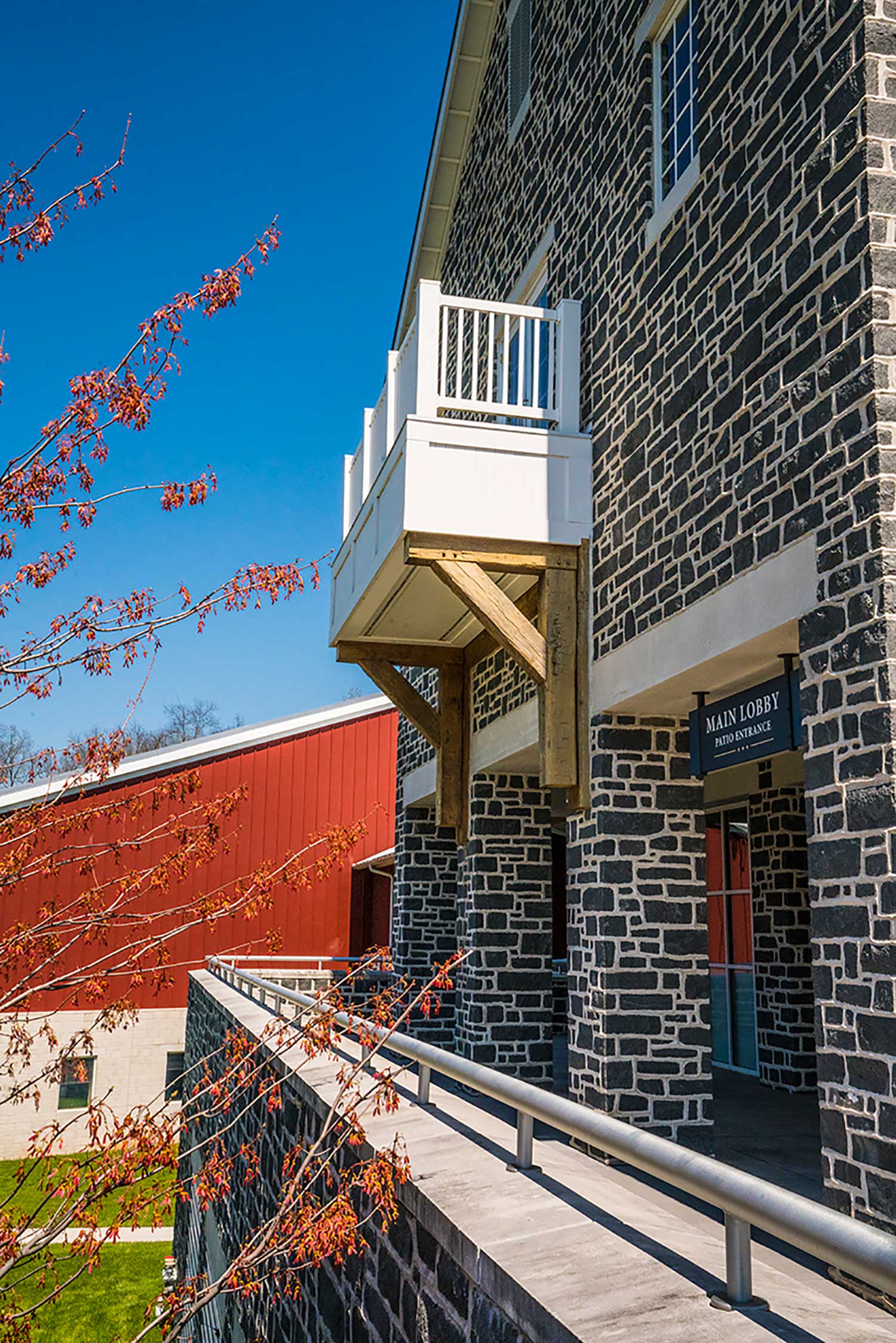 This facility, more than 130,000 square feet, replaced the much smaller original structure that had served for 87 years. Three timber species were used: Port Orford cedar, fresh-sawn white oak, and reclaimed mixed oak. The latter two were the predominant species: the fresh-sawn oak was harvested in Pennsylvania, while the reclaimed mixed oak came from dismantled Pennsylvania barns. More than 400 timbers were worked and the total board footage was just shy of 10,000. The structure was the first US museum to achieve LEED Gold certification.