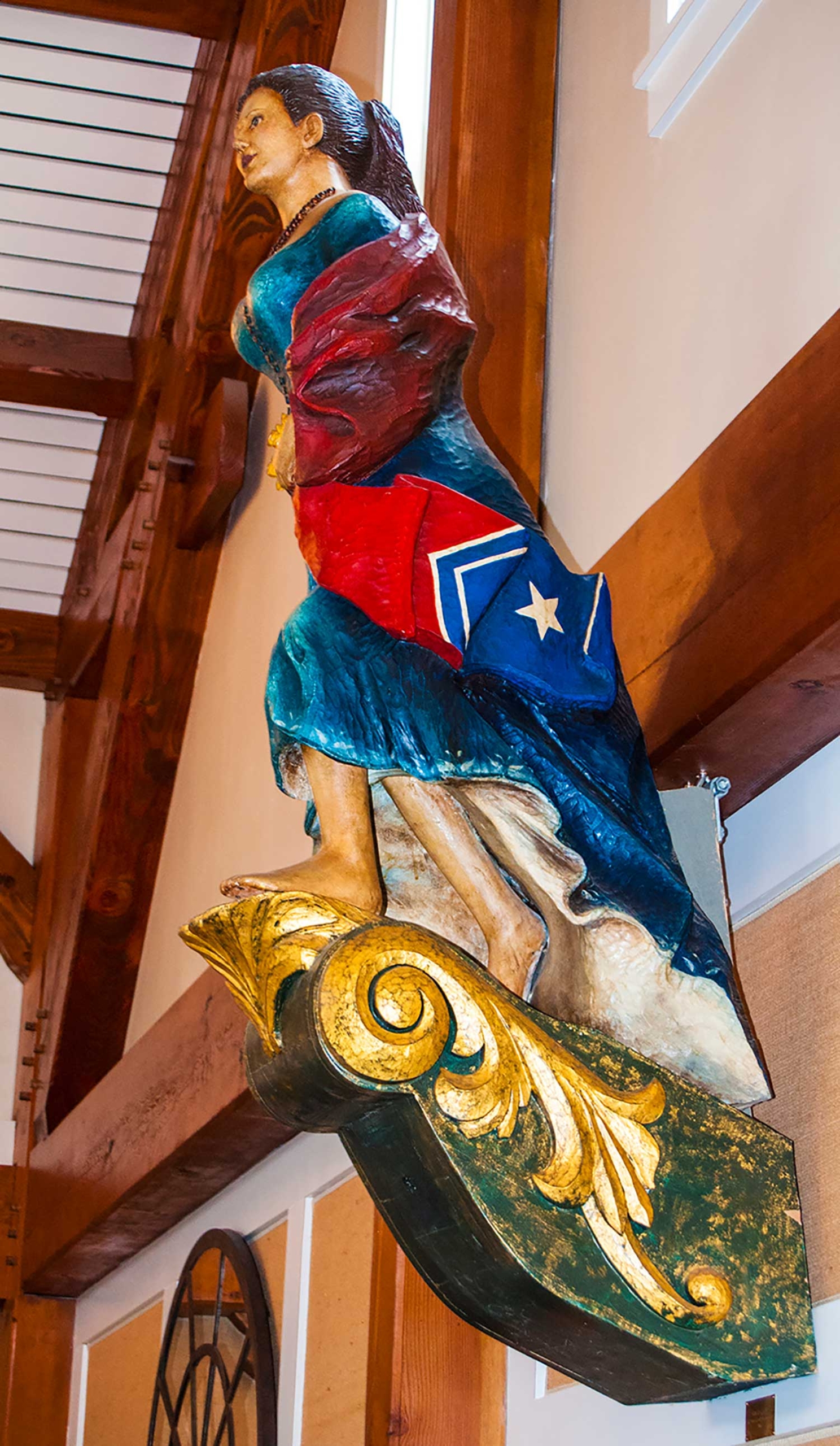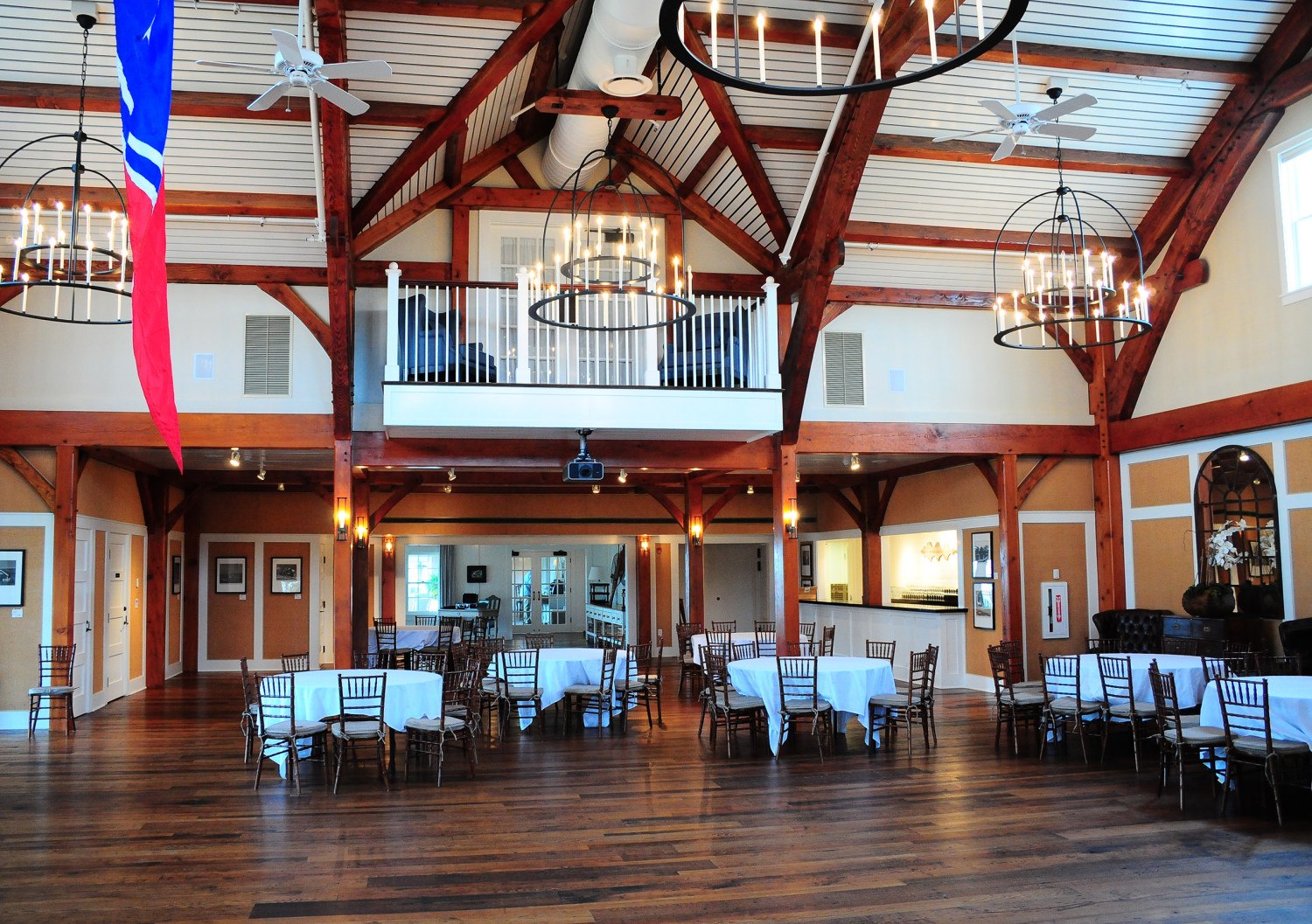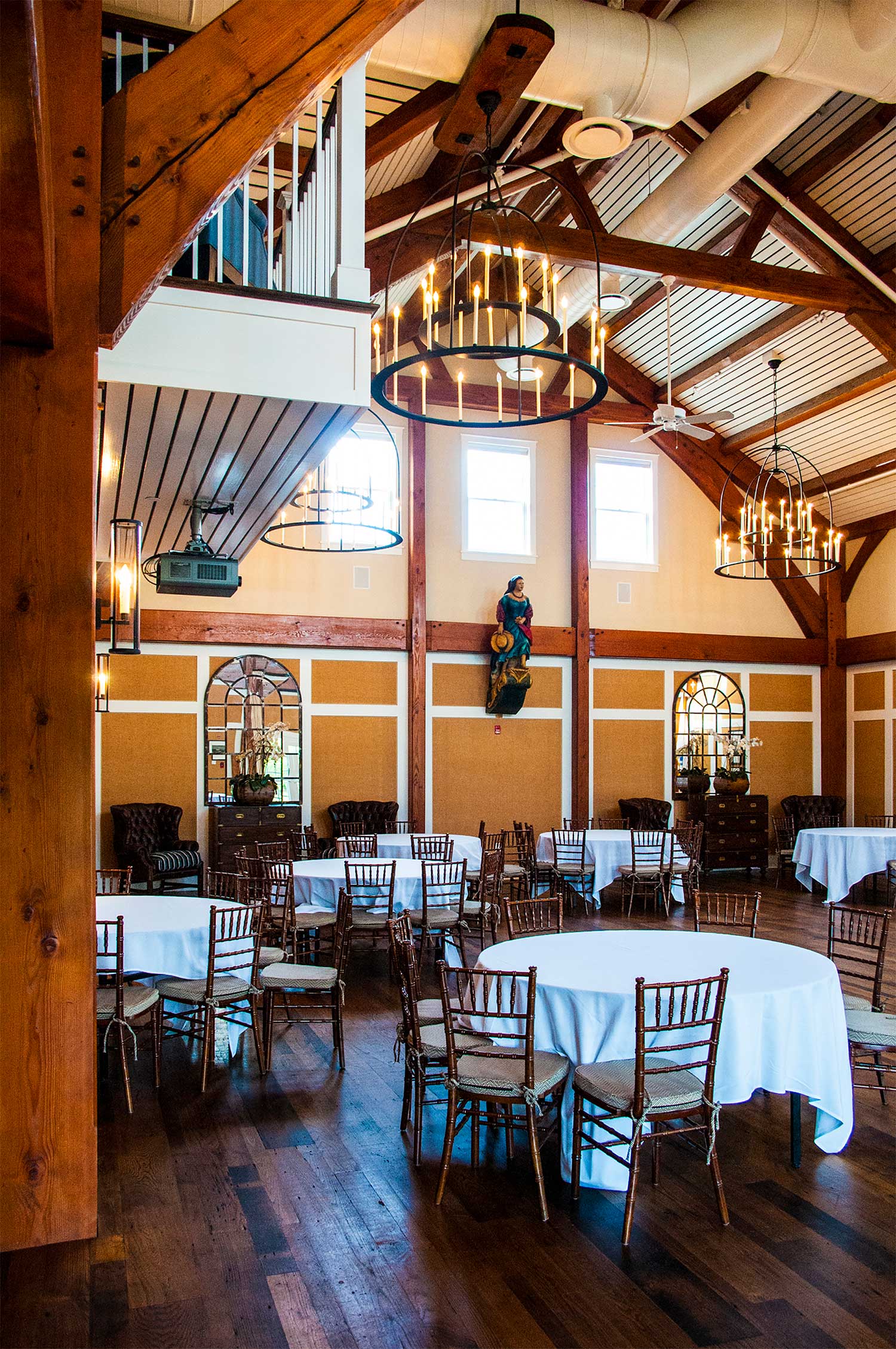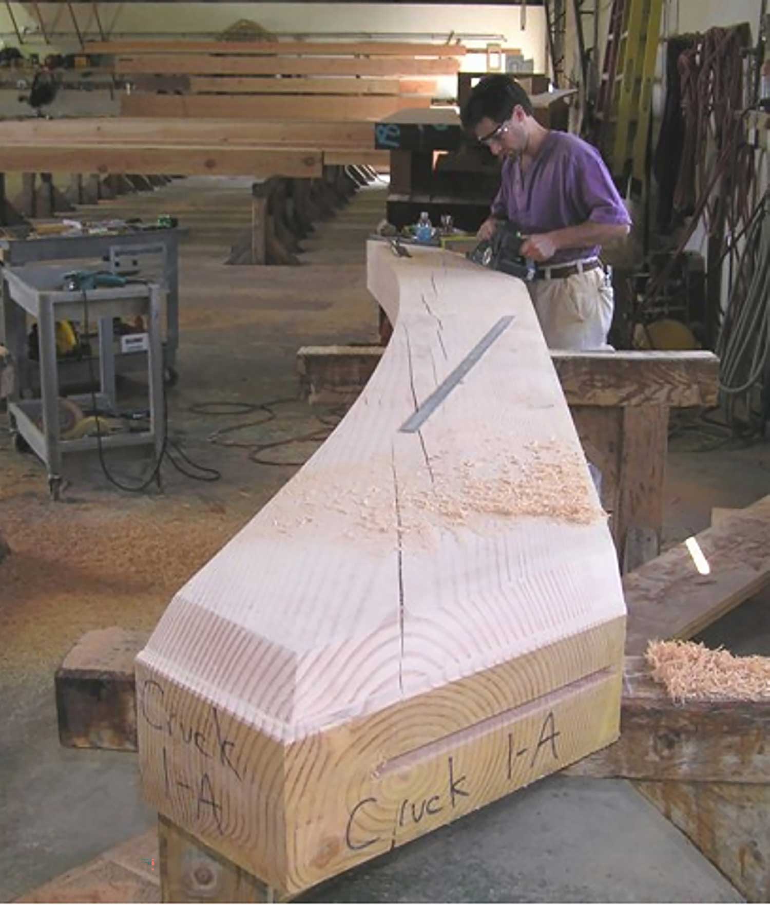 The frame, of stained Douglas fir, required 20,000 board feet and consisted of over 200 timbers.