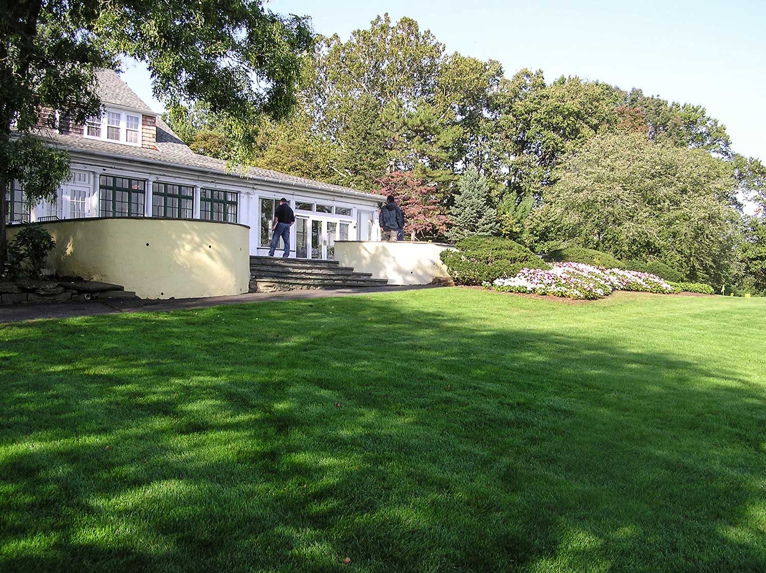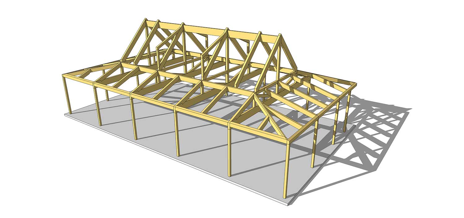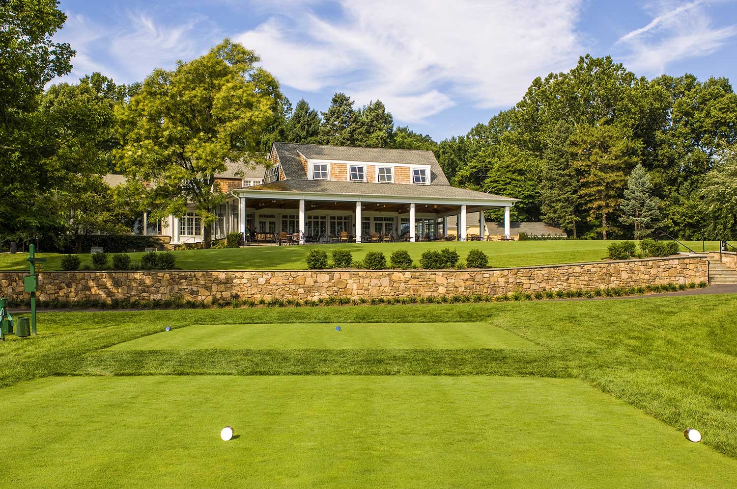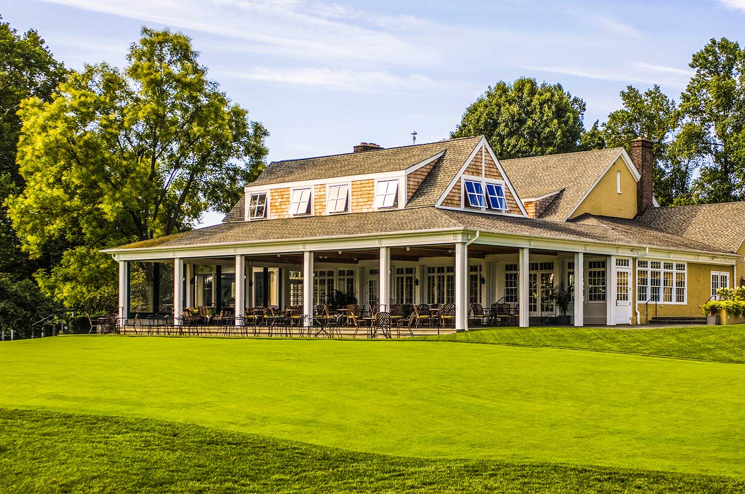 The membership of this private club wanted a covered outside dining area adjacent to the main clubhouse. This 2,500 square foot three season room is wide open on three sides, but there are retractable walls hidden in the soffits to make the three season use possible. Shed dormers on both sides of the roof have operable windows which vent hot summer air and draw in cooler air from down below. The timbers are Douglas fir, select structural grade, free of heart center. The joinery is predominantly traditional mortise and tenon, but there are also steel connectors embedded and concealed in the timbers to handle high tension loads.
