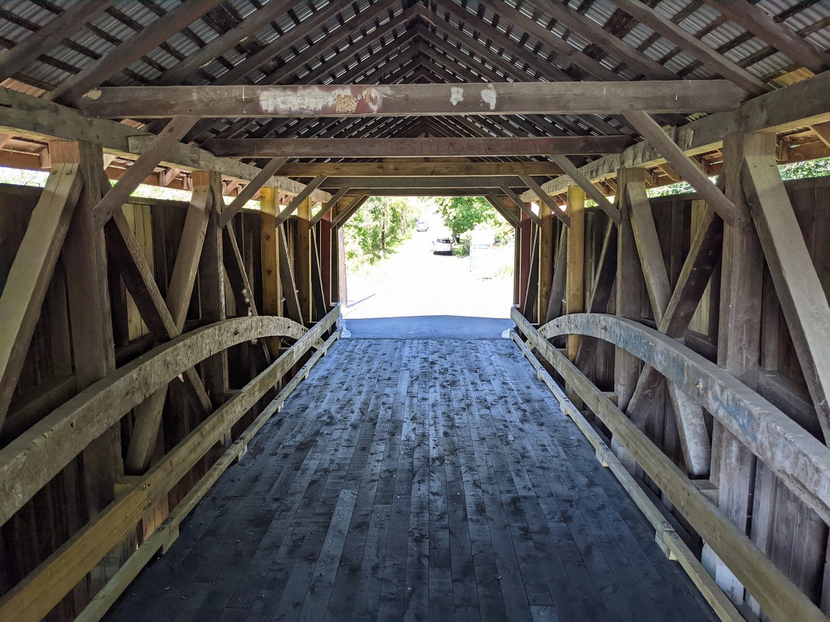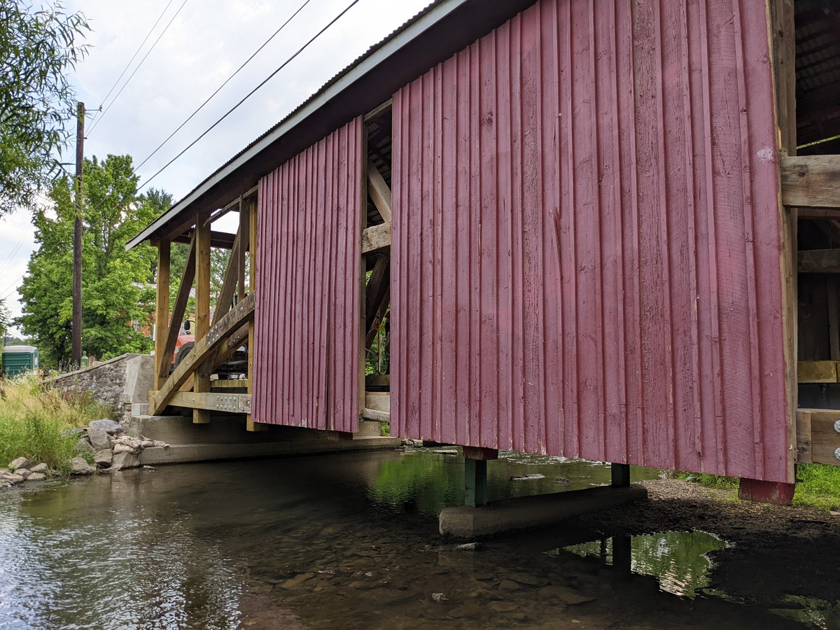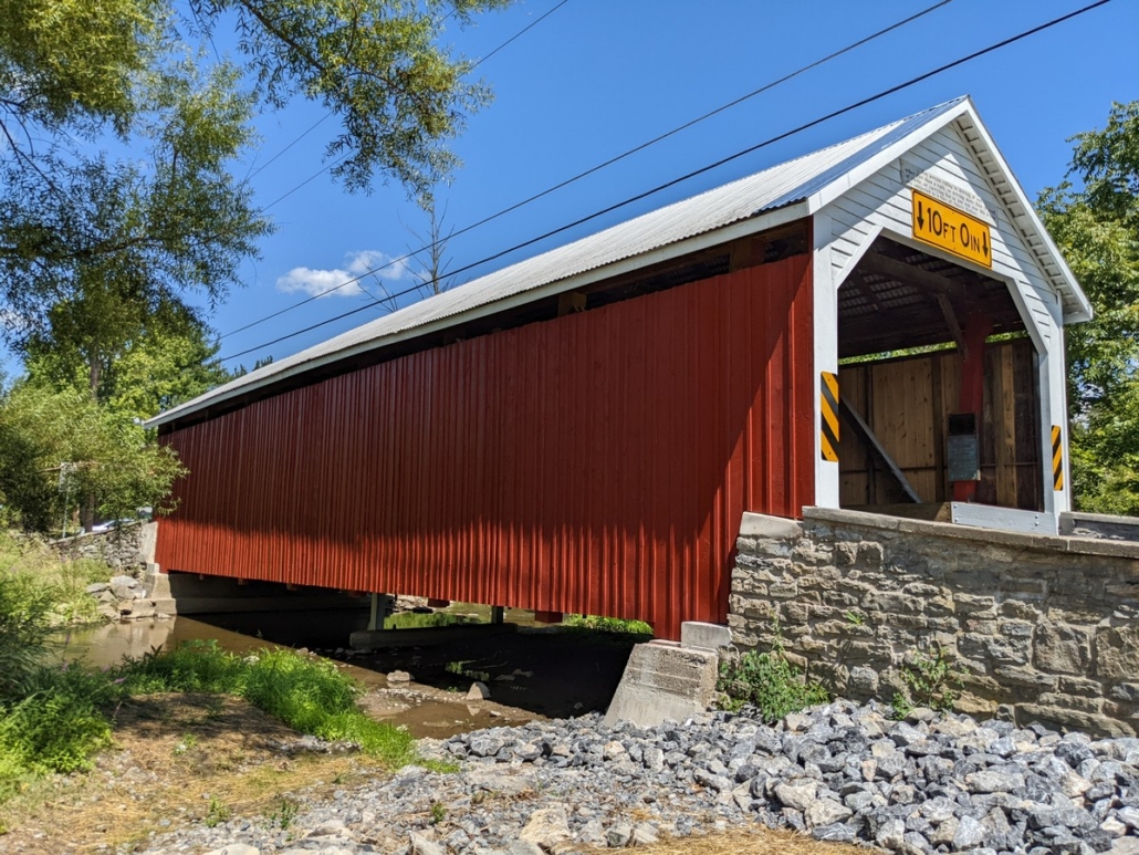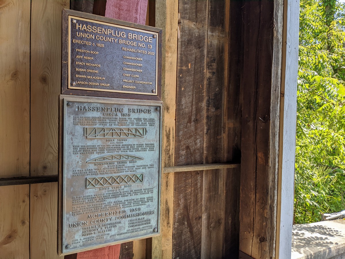 The Hassenplug Covered Bridge was built in 1825 and is one of the oldest operating covered bridge in America.