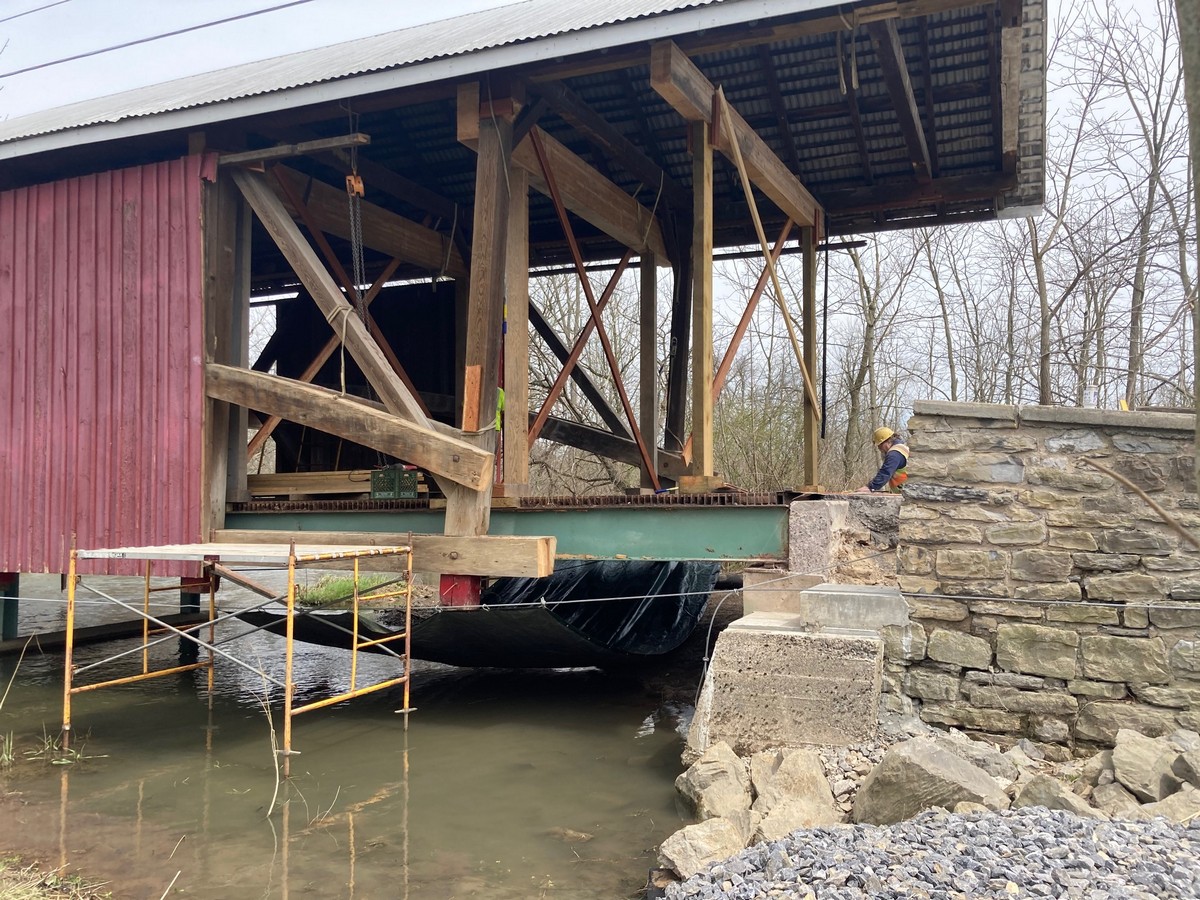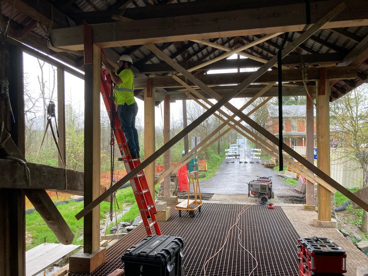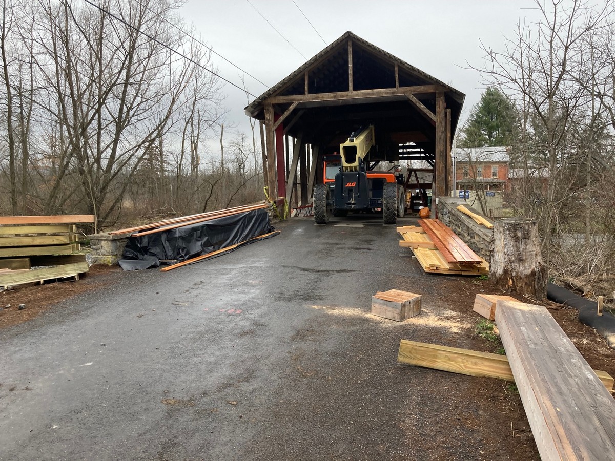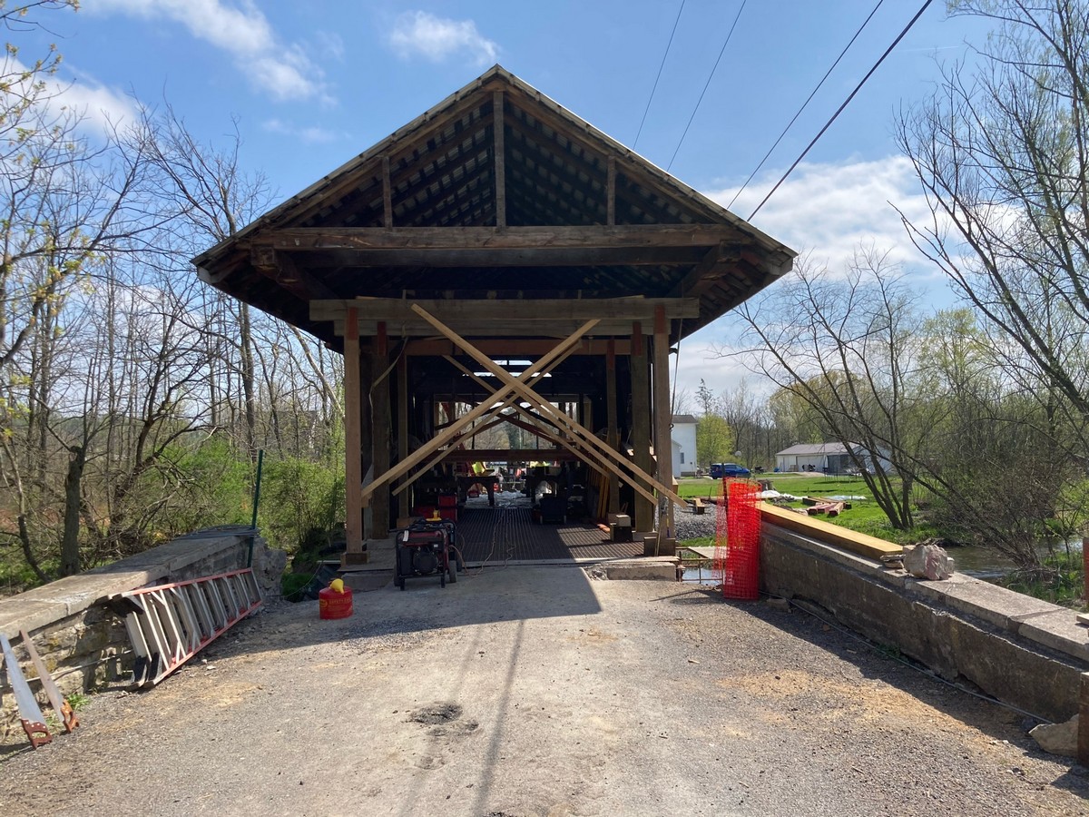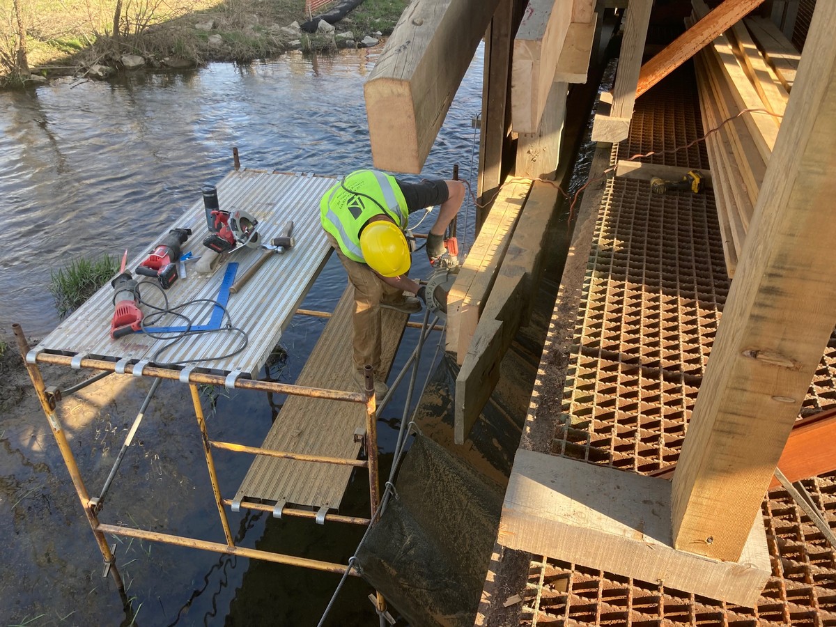 LCTF replaced approximately 30% of the original 1825 timber structure due to decay and deterioration. A 7″ thick timber deck was added to the top of the steel bridge beams restoring the interior to all timber components.