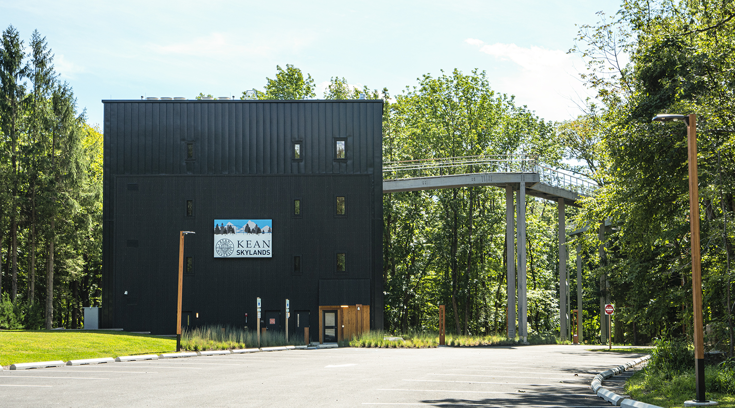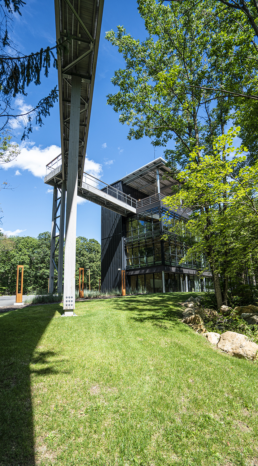 This structure is the centerpiece of a satellite campus of Kean University in Oak Ridge, New Jersey and of Kean University’s School of Environmental Studies. The campus is known as Kean Skylands and is situated on top of Mt. Paul, a small northwest New Jersey mountain blanketed with forest. The central aim of the building is to provide an environment for learning that is uniquely attuned to the surrounding natural landscape.