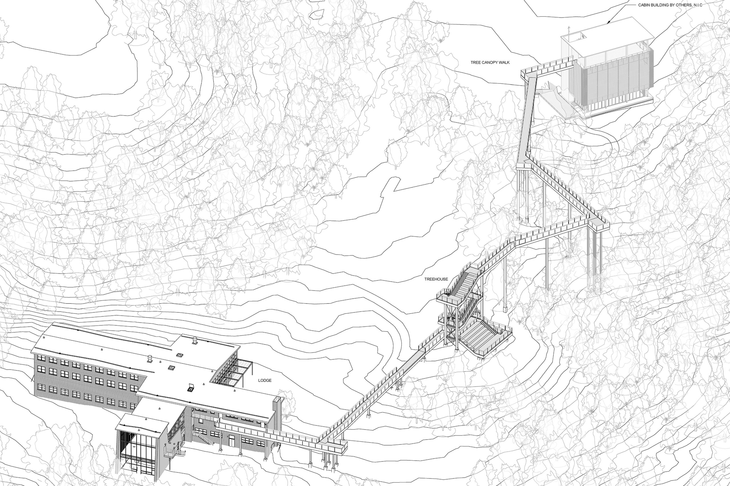 In addition to the central tree house, viewing platforms are spread throughout the towering walkway structure. Some of these are at a height of up to 60 feet above the forest floor, well up in the tree canopy. They provide important vantage points for the views of the forest and mountain-side topography below, much like viewing stones in a Japanese garden instruct a visitor to wait and take the time to experience an important view.