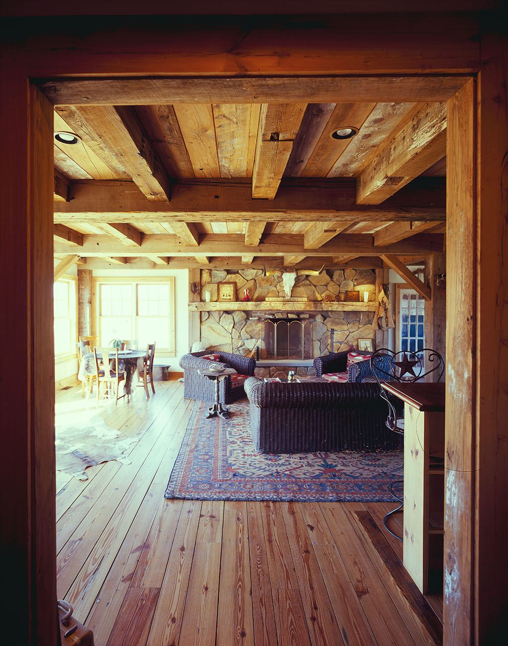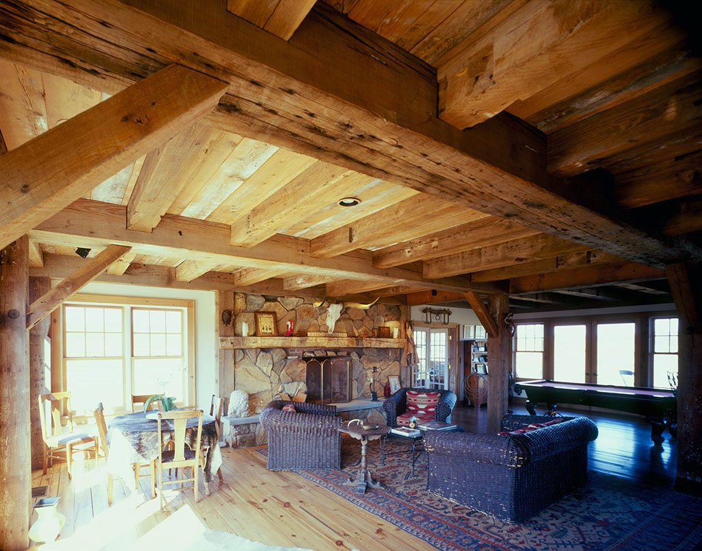 This hybrid timber framed house is in Montauk, at the far eastern tip of Long Island, and is the home of the owner of the oldest cattle ranch in the United States, in continuous operation since 1658.