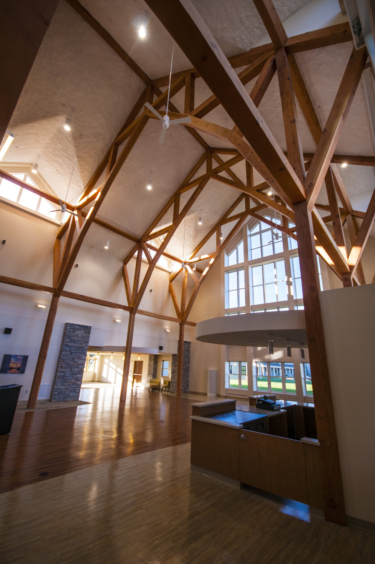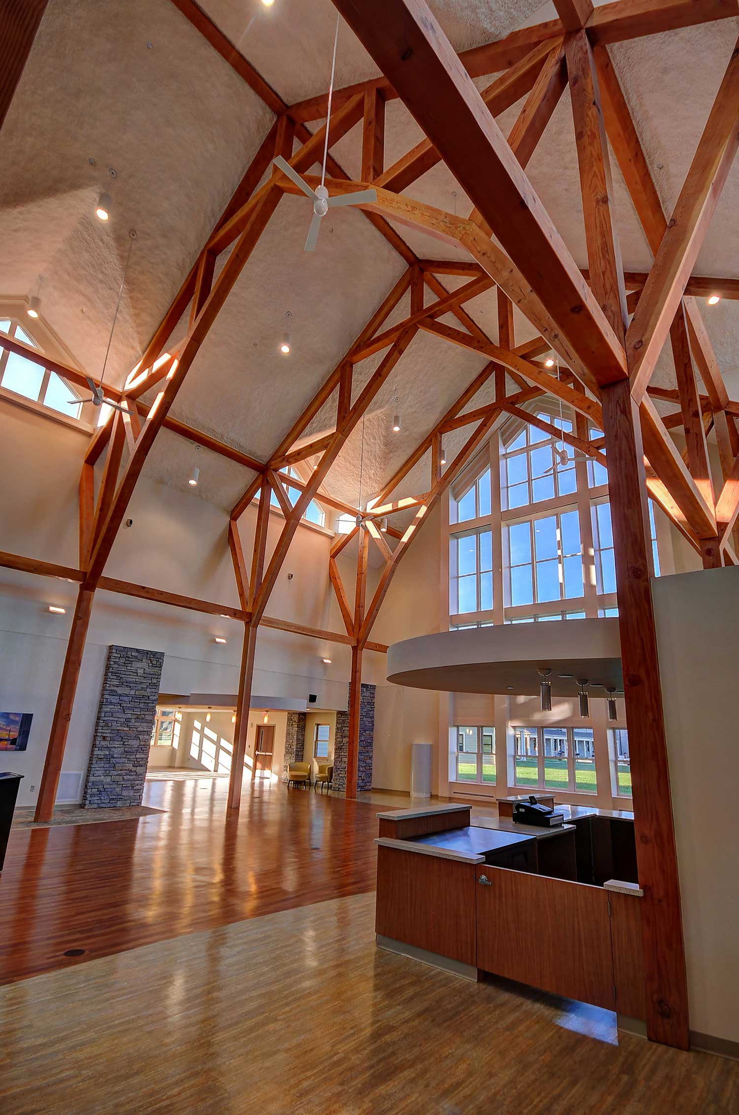 The U.S. Department of Veterans Affairs maintains a major health care complex in Lebanon, Pennsylvania. This facility was added to expand the range and quality of behavioral health services for veterans. The architecture firm was Array Architects, a national firm specializing in health care facilities. From the start of the project, priority was given to the incorporation of wood into the main reception and waiting area of the building to capitalize on its warmth and calming influence.