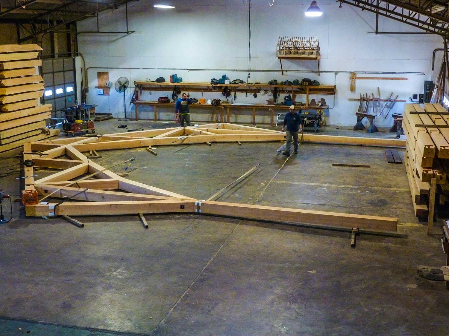 The timber is select structural Douglas fir, free of heart center, surfaced on four sides to 1/2” under nominal dimensions. The timbers were sanded dead smooth and finished with a clear polymerized tung oil.