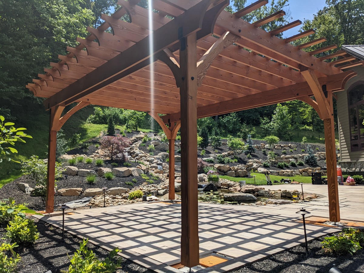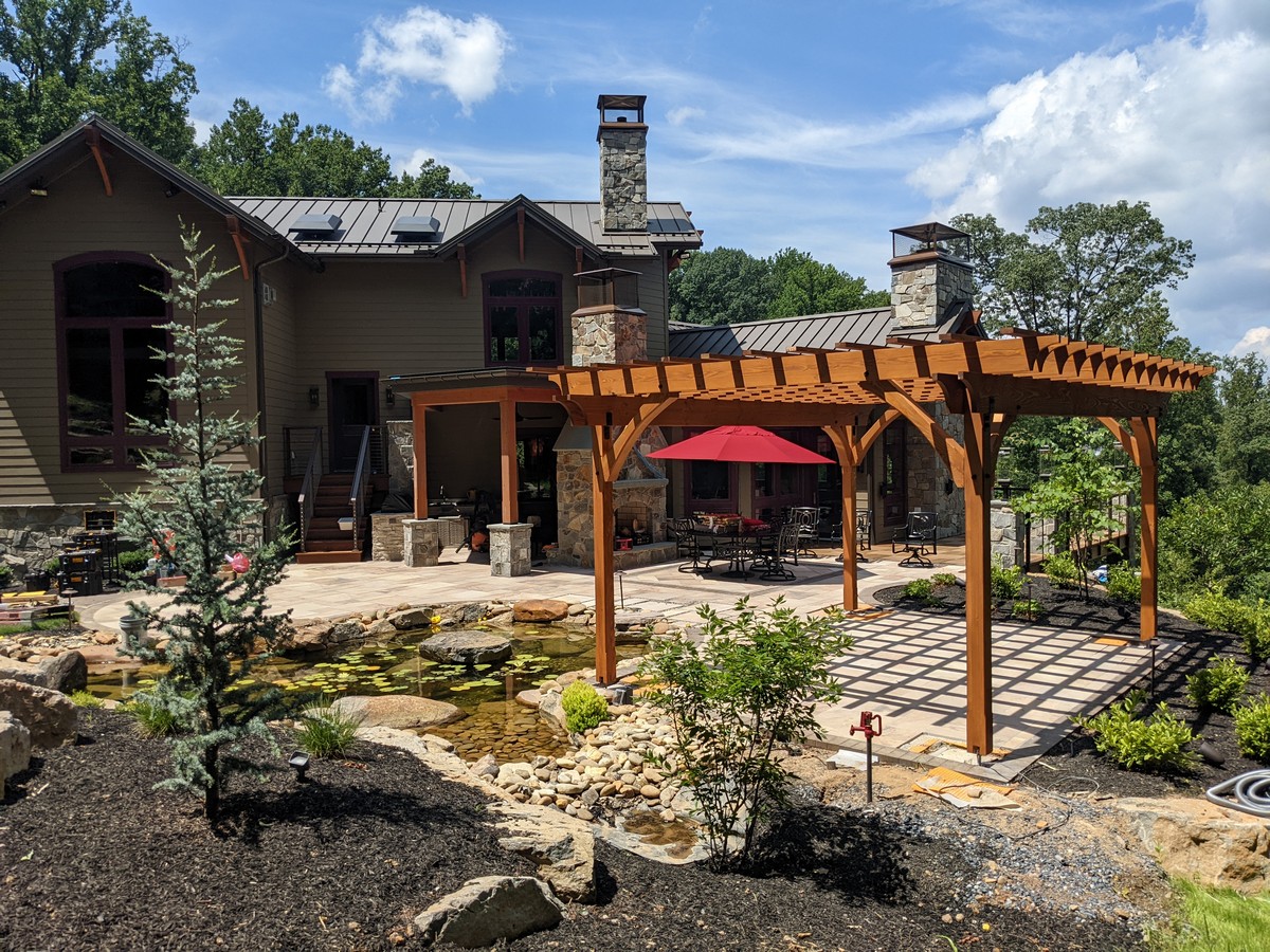 Timber Frame Species: Douglas Fir Surface: Sanded Grade: Select Structural Quantity: 54 Pieces, 1,021 Board Feet Finish: Proluxe Dark Oak #009 Edges: Stop Chamfers Joinery: Steel Bolts
