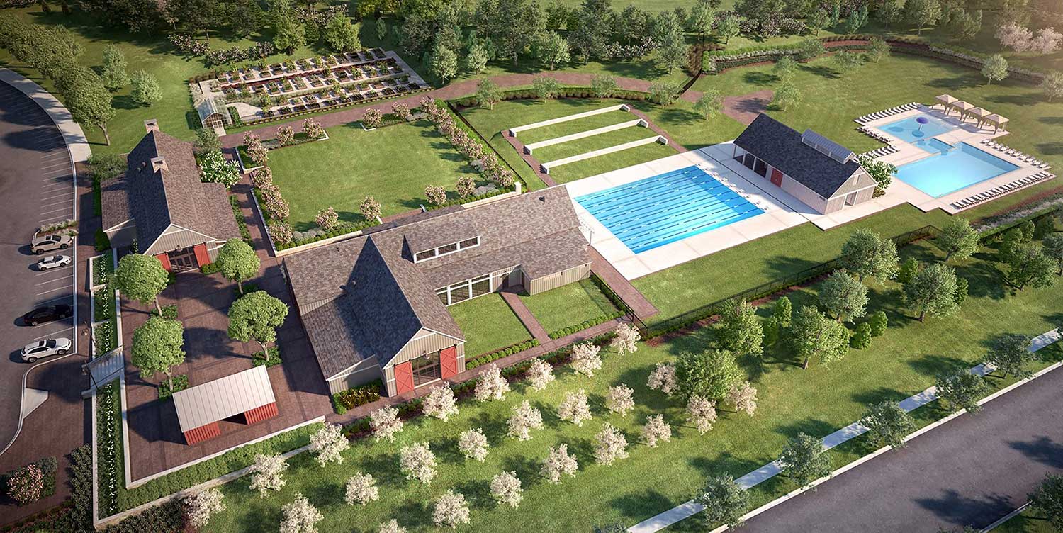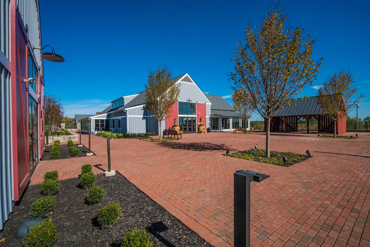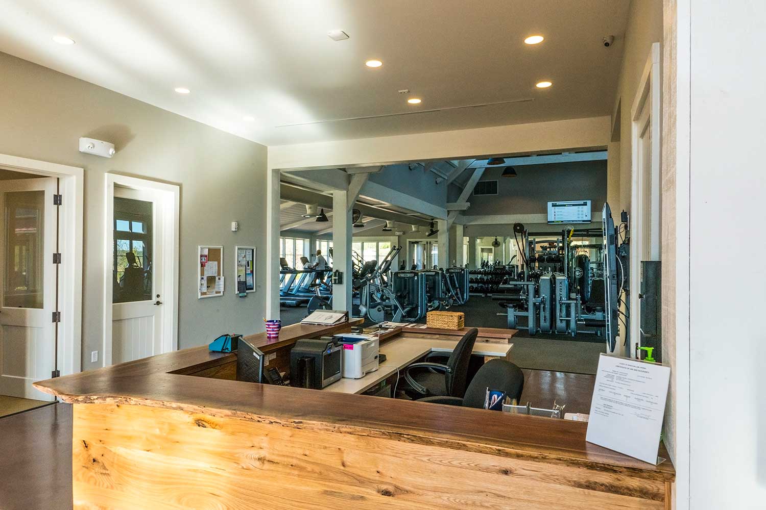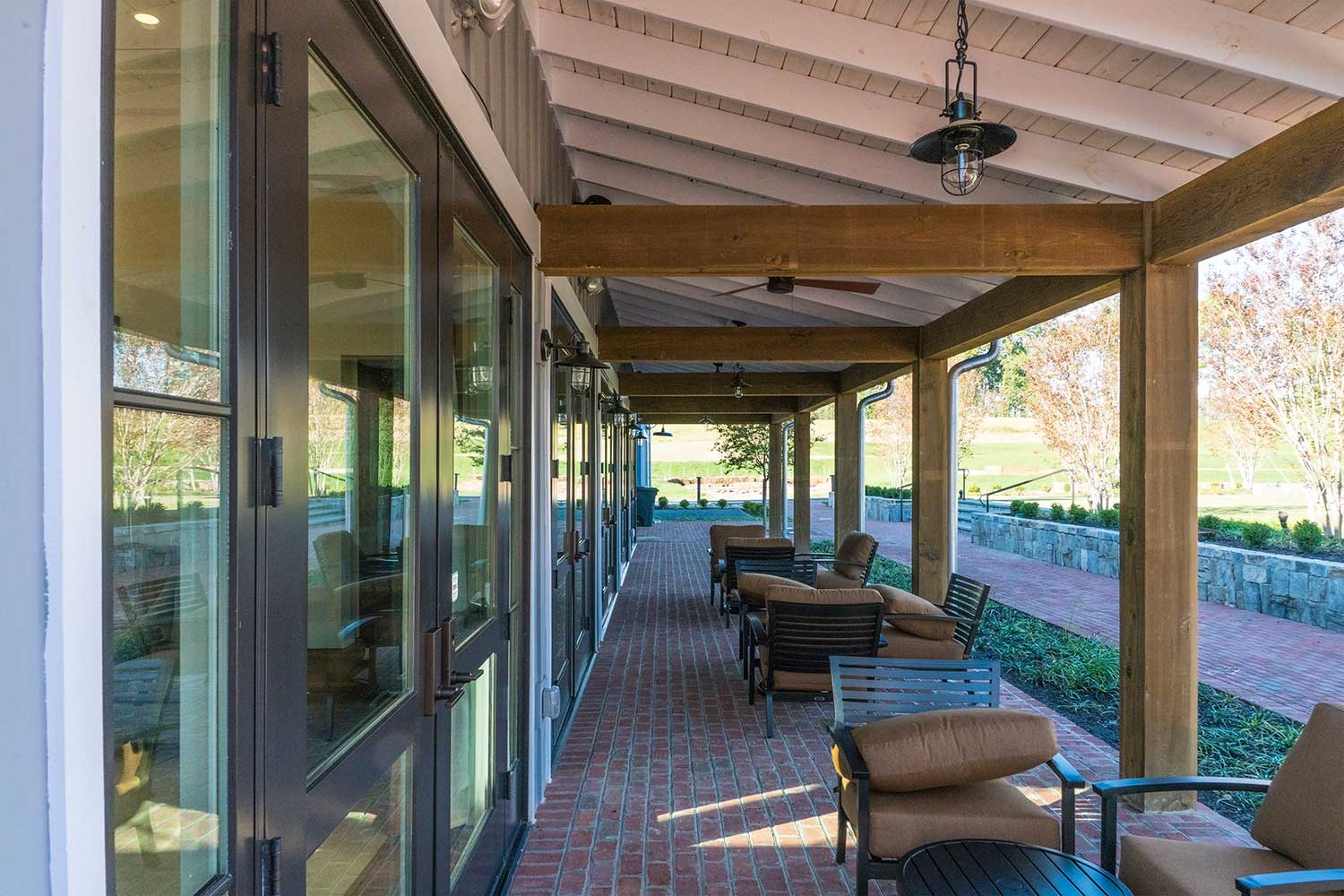 An emerging trend in upscale housing developments is the creation of a community hub intended to anchor and strengthen the sense of community. In the master planning of such a community center there is often an overt effort to mimic a feeling of organic growth, as if the buildings and facilities that make up the center had grown naturally over a period of many years, rather than being built all at once. Such is the Recreation Center at Potomac Shores, a planned community development in Dumfries, Virginia, several miles south of the Washington, D.C beltway.