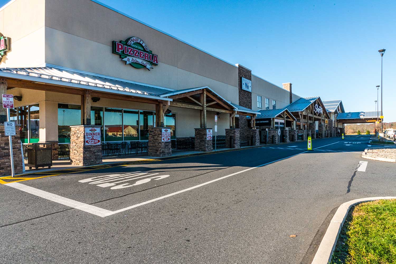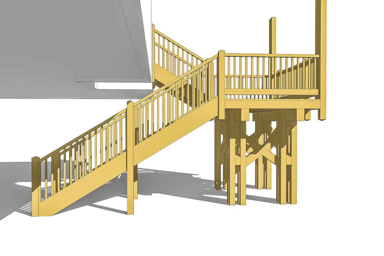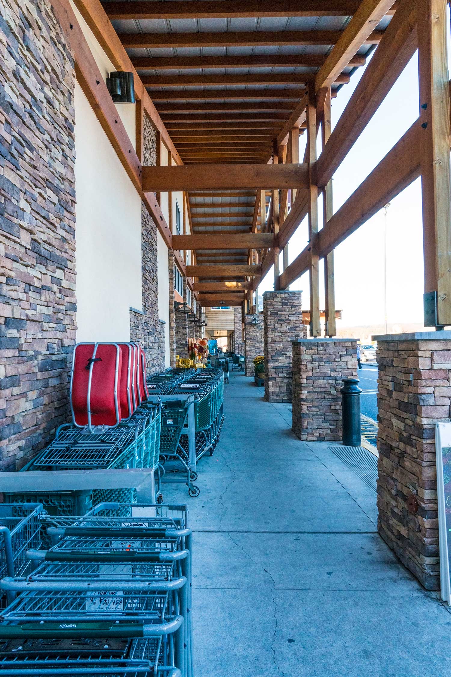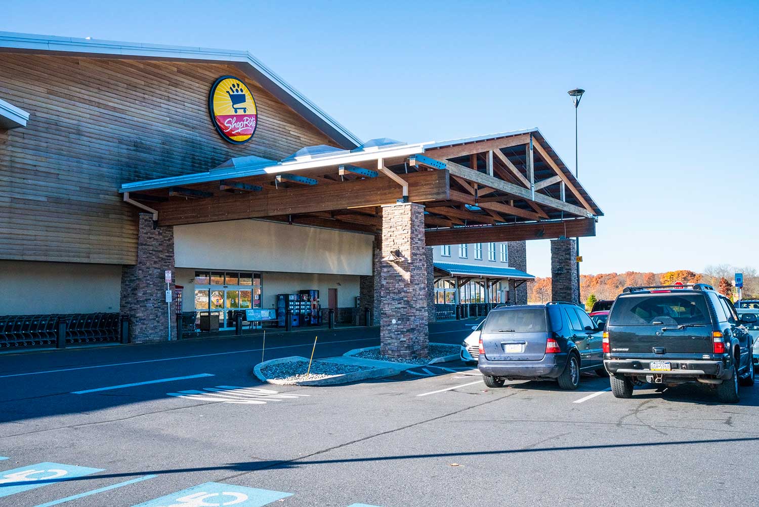 This new store doubled the size of the previous one. Lancaster County Timber Frames’ involvement included seven exterior timber framed canopies and an interior timber framed stair case. Over 700 Douglas fir timbers, totaling 42,000 board feet were used for the canopies. Additionally, the staircase totaled 3,500 board feet and had a timber count of 250 pieces. The handrails are not included in these figures as they were handled by others.