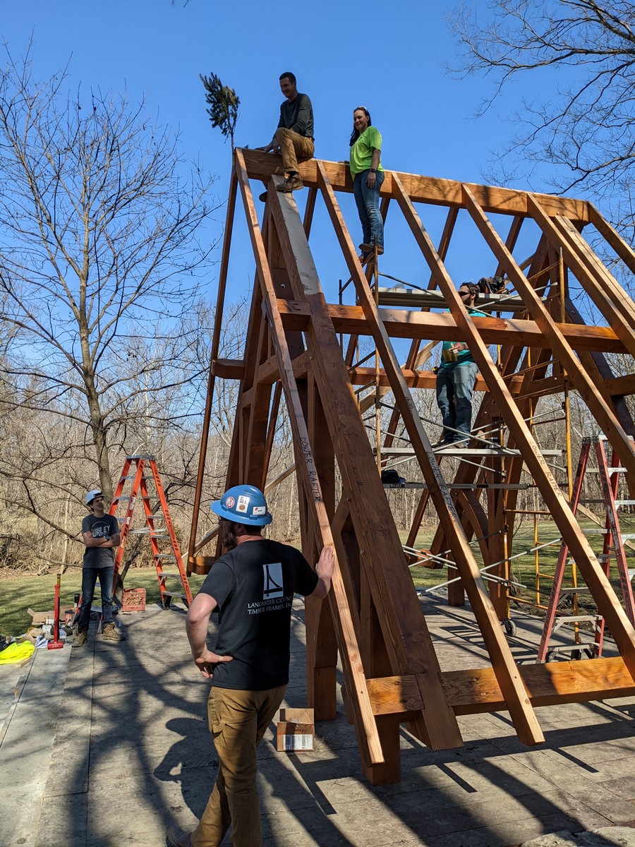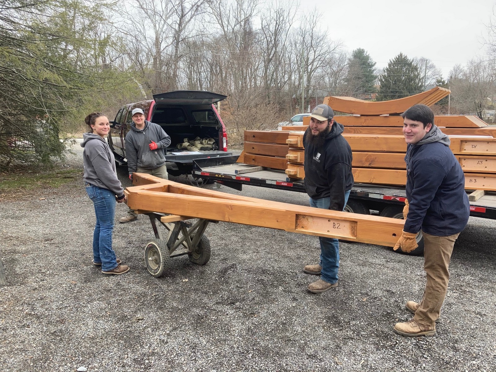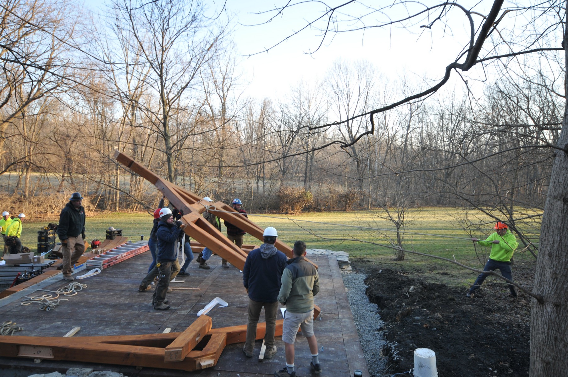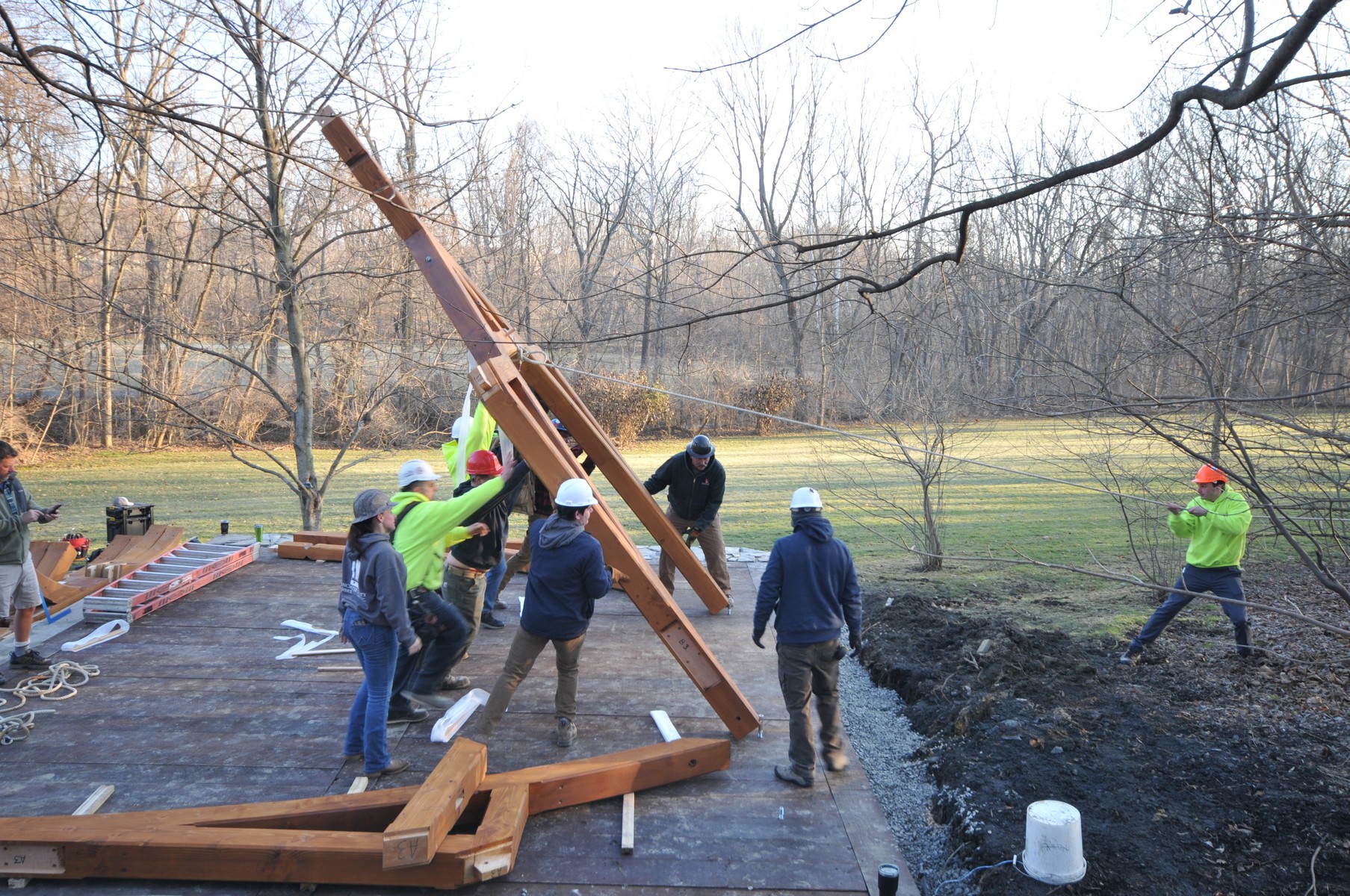 When Ken and Karen Painter, owners of the award-winning and highly-rated Stone Mill Inn approached us about building the “Abbey” on their wedding venue and event estate, we knew we had to do it. It was both simple and graceful, plus it was barely two miles from our shop and office. This proximity made it possible for each and every member of Lancaster County Timber Frames to participate in the hand-raising of the frame.