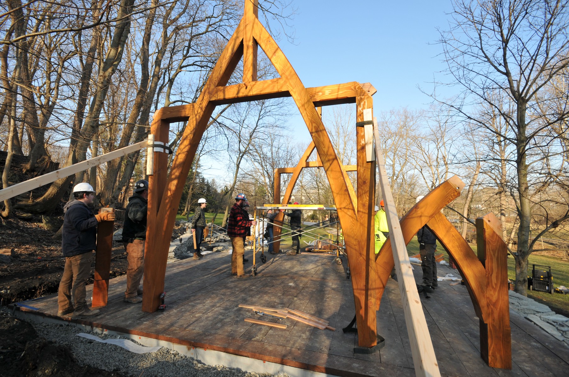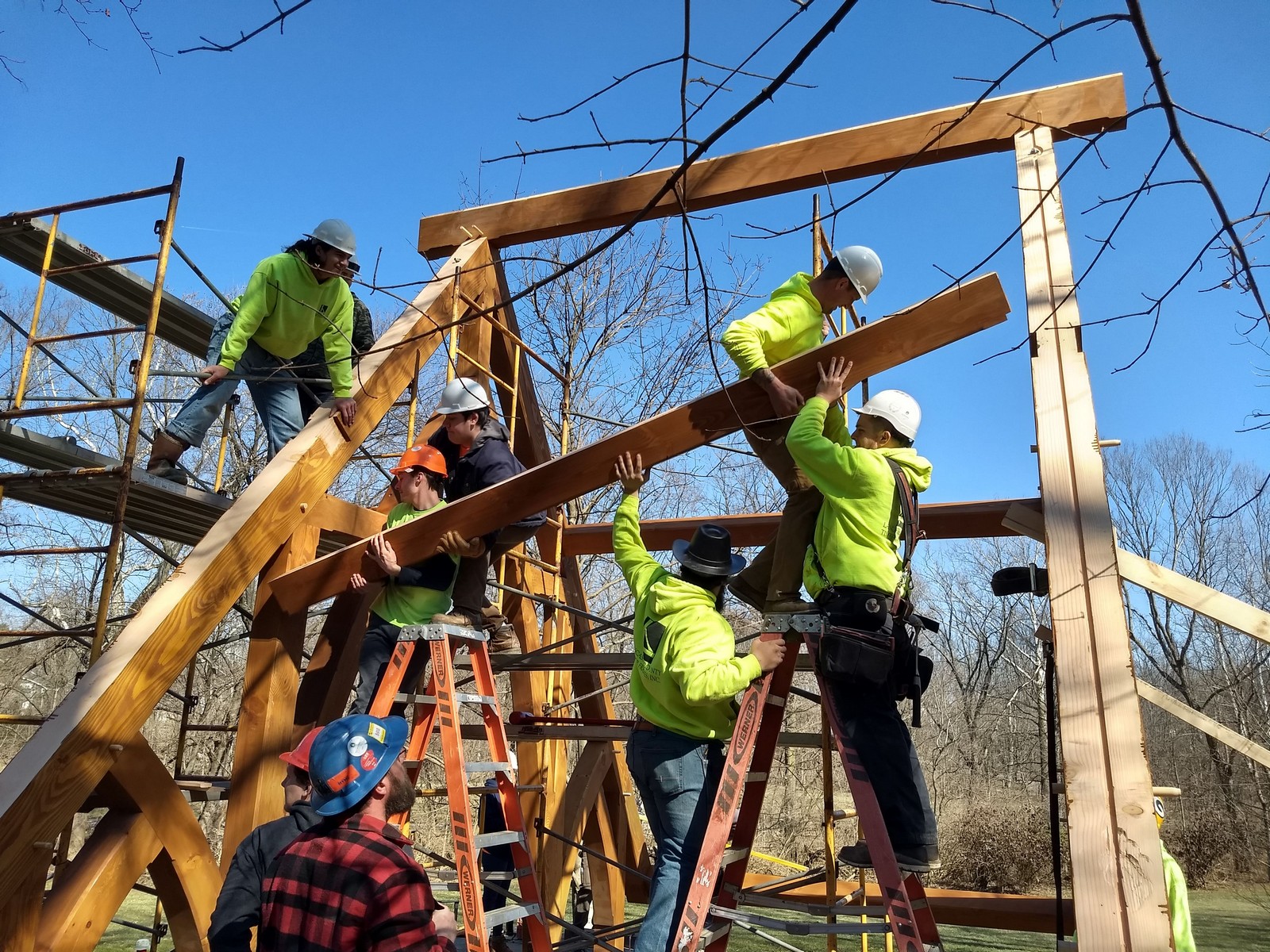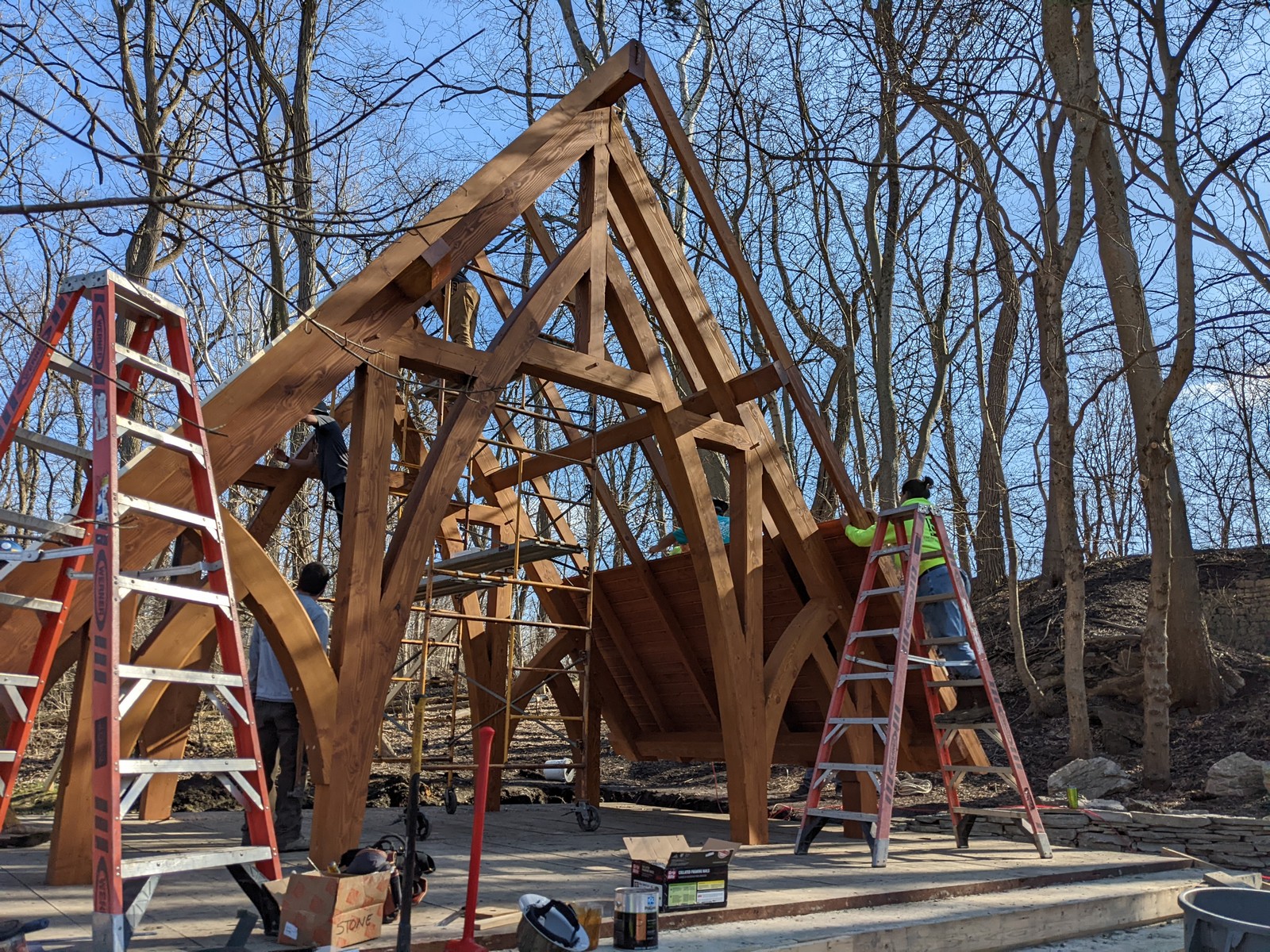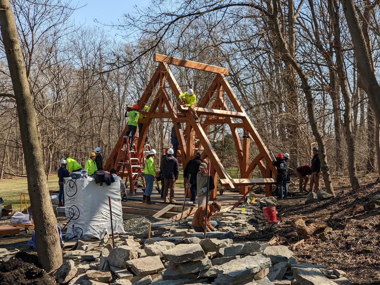 When Ken and Karen Painter, owners of the award-winning and highly-rated Stone Mill Inn approached us about building the “Abbey” on their wedding venue and event estate, we knew we had to do it. It was both simple and graceful, plus it was barely two miles from our shop and office. This proximity made it possible for each and every member of Lancaster County Timber Frames to participate in the hand-raising of the frame.